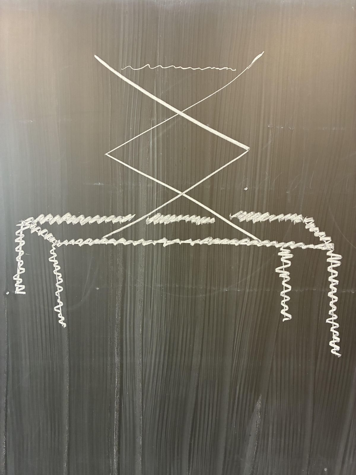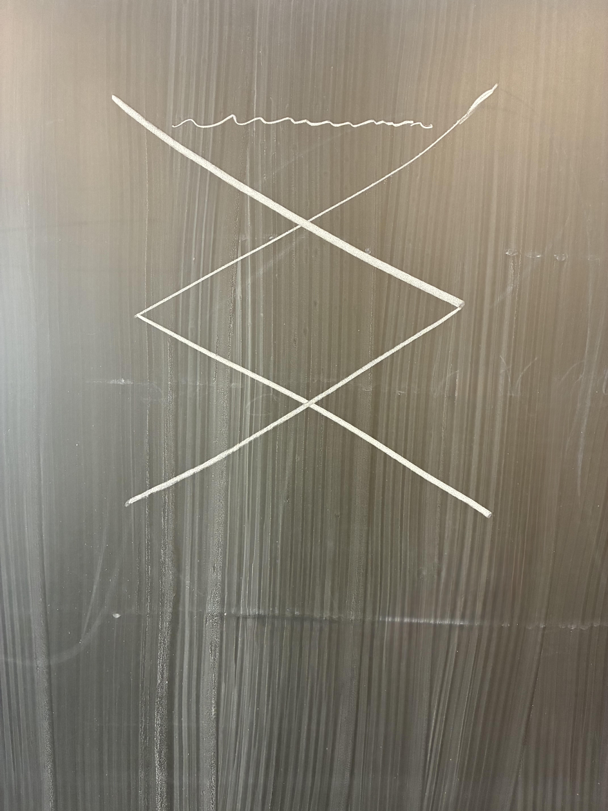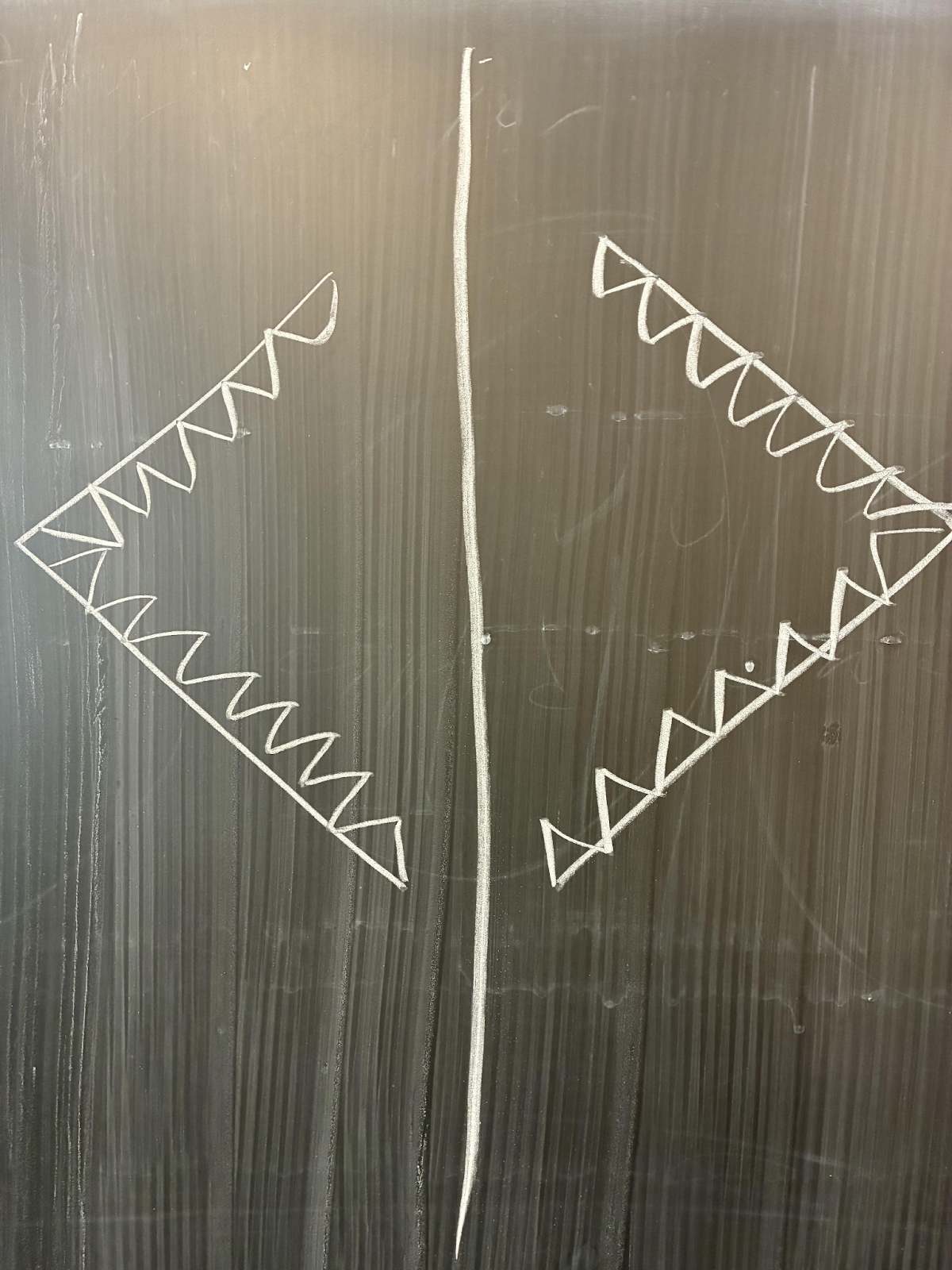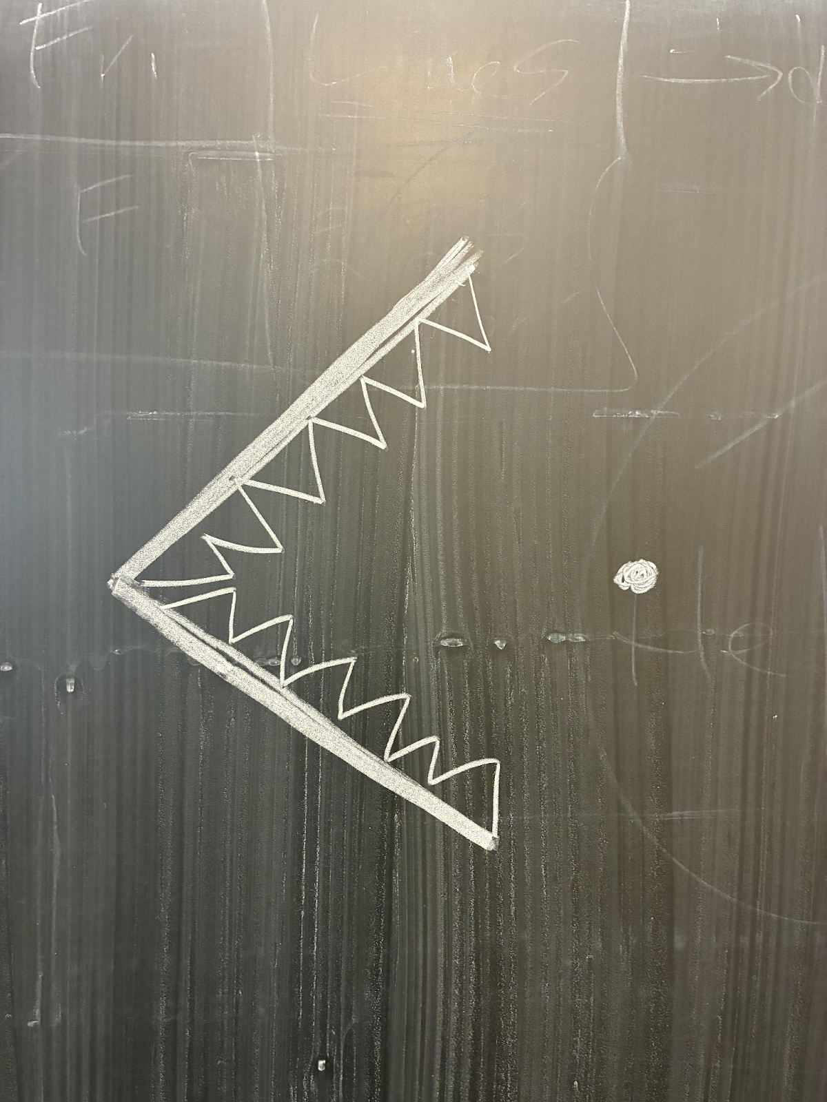 When it came to describing fifteen year olds, Betty began by drawing a big sideways V on the board about to gobble up a tiny pinprick of chalk, thus: